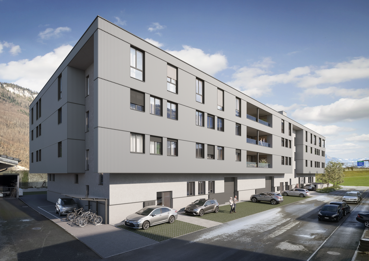 Eine Einstellhalle im Untergeschoss bietet ausreichend Parkmöglichkeiten und ergänzte das Raumangebot optimal. Die gute Erreichbarkeit sowie die attraktive Lage im aufstrebenden Gebiet Eichli machen den Standort besonders interessant.
